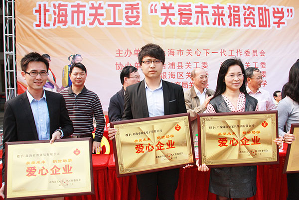 園區(qū)企業(yè)北海景光電子有限公司榮獲了“愛(ài)心企業(yè)”榮譽(yù)稱(chēng)號(hào),這是繼去年景光電子捐贈(zèng)“女警護(hù)學(xué)崗”的又一獻(xiàn)愛(ài)心活動(dòng),同時(shí)是園區(qū)鼓勵(lì)企業(yè)積極響應(yīng)對(duì)“關(guān)愛(ài)未來(lái)捐資助學(xué)”的具體舉措。