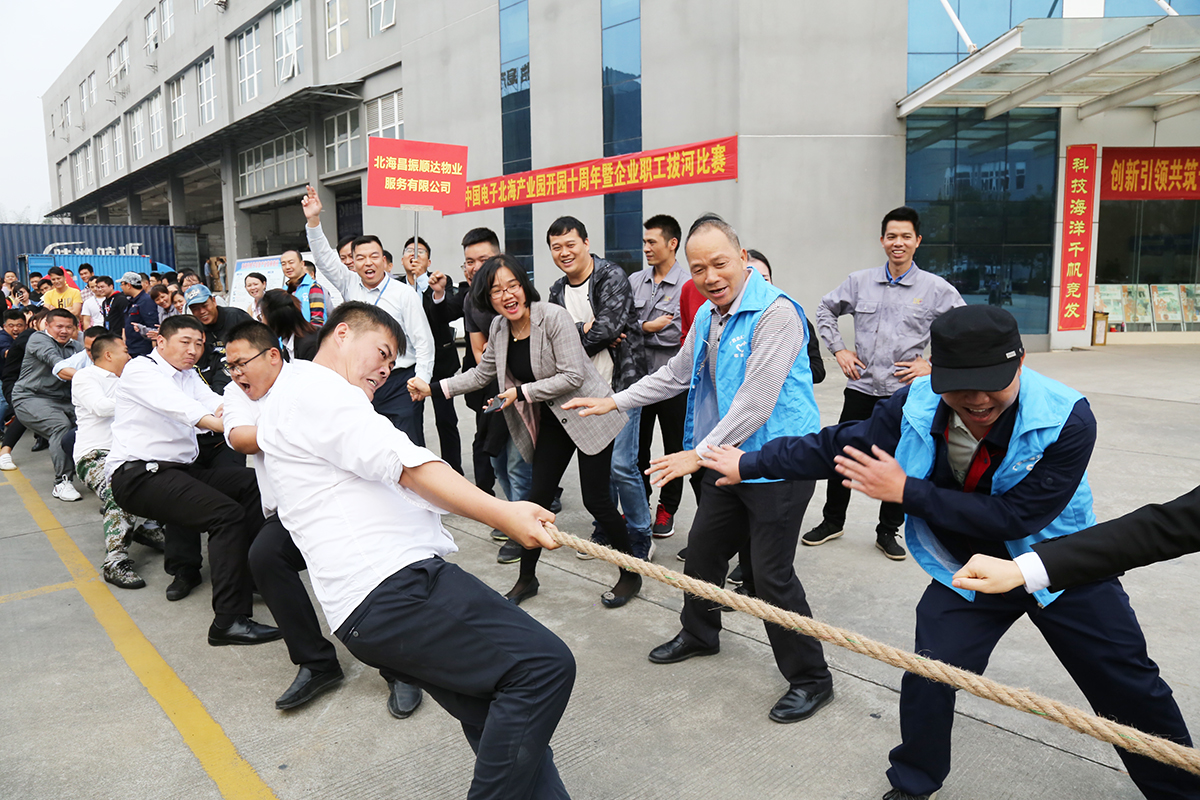 2019年12月30日下午,中國(guó)電子北海產(chǎn)業(yè)園組織各入園企業(yè),舉行拔河比賽活動(dòng),慶祝中國(guó)電子北海產(chǎn)業(yè)園開(kāi)園十周年。