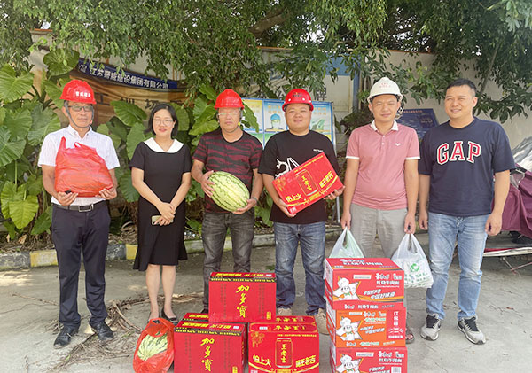 2023年7月19日下午,園區(qū)項(xiàng)目中電春海湖、中電海灣國際建設(shè)現(xiàn)場烈日炎炎,受集團(tuán)公司領(lǐng)導(dǎo)的委托,中國電子北海產(chǎn)業(yè)園公司副總經(jīng)理劉曉娟到項(xiàng)目建設(shè)現(xiàn)場,為高溫天氣下堅(jiān)守在一線的工作者送去了清涼和慰問,囑咐大家在高溫天氣下工作要做好防暑降溫措施,合理安排工作時(shí)間。
