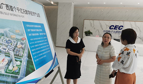 2023年7月19日上午,北海市市委常委、市紀(jì)委書(shū)記劉纓帶隊(duì)到中國(guó)電子北部灣信息港開(kāi)展“壯大實(shí)體經(jīng)濟(jì)推動(dòng)高質(zhì)量發(fā)展”調(diào)研。中國(guó)電子北海產(chǎn)業(yè)園發(fā)展有限公司副總經(jīng)理劉曉娟現(xiàn)場(chǎng)向劉纓書(shū)記匯報(bào)了信息港項(xiàng)目建設(shè)、運(yùn)營(yíng)情況。